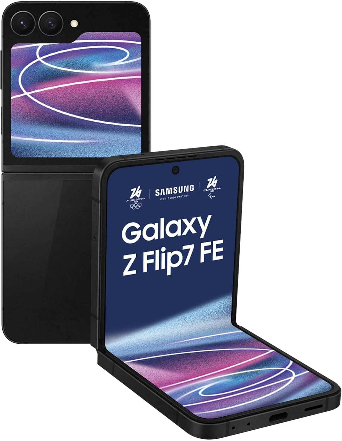 Samsung Galaxy Z Flip7 FE Smartphone AI, RAM 8GB, 128GB, Display 3,4" Super AMOLED/6,7" Dynamic AMOLED 2X, Fotocamera 50MP, Black. Dimensioni diagonale schermo: 17 cm (6.7"), Risoluzione del display: 2640 x 1080 Pixel. Famiglia processore: Samsung Exynos, Modello del processore: 2400. Capacità della RAM: 8 GB, Capacità memoria interna: 128 GB. Risoluzione fotocamera posteriore (numerico): 50 MP, Tipo di fotocamera posteriore: Doppia fotocamera. Capacità della batteria: 4000 mAh. Colore del prodotto: Nero. Peso: 187 g